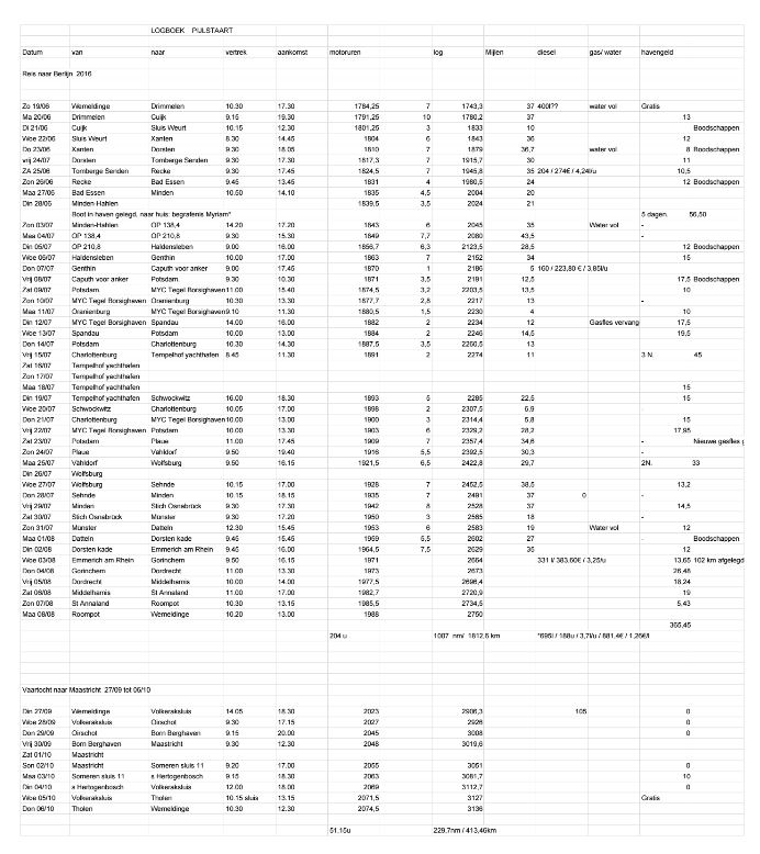 De reis ging dit jaar door Belgie en het zuiden van Nederland. In totaal is 1.500 km gemotord, 350 liter diesel verbruikt en 750 Euro havengeld betaald. En dat alles in 2,5 maand met